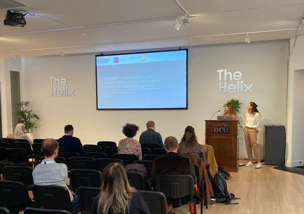 Fabian Pettig, Uwe Krause, Elena Flucher, and Pauline Hennig represented our project and the participating partners at the 35th International Geographical Congress 2024 in Dublin from 24–30 August 2024. The session led by Fabian Pettig and Uwe Krause on ‘Geographical Education: Geography Teachers and the Challenges of the Anthropocene’ included exciting presentations and interesting discussions on perspectives on education in the Anthropocene. Elena Flucher and Pauline Hennig were also able to present initial results from the first phase of research in geography lessons and interviews with teachers. The numerous other contributions and workshops provided an opportunity for exchange and networking with national and international experts from all over the world.